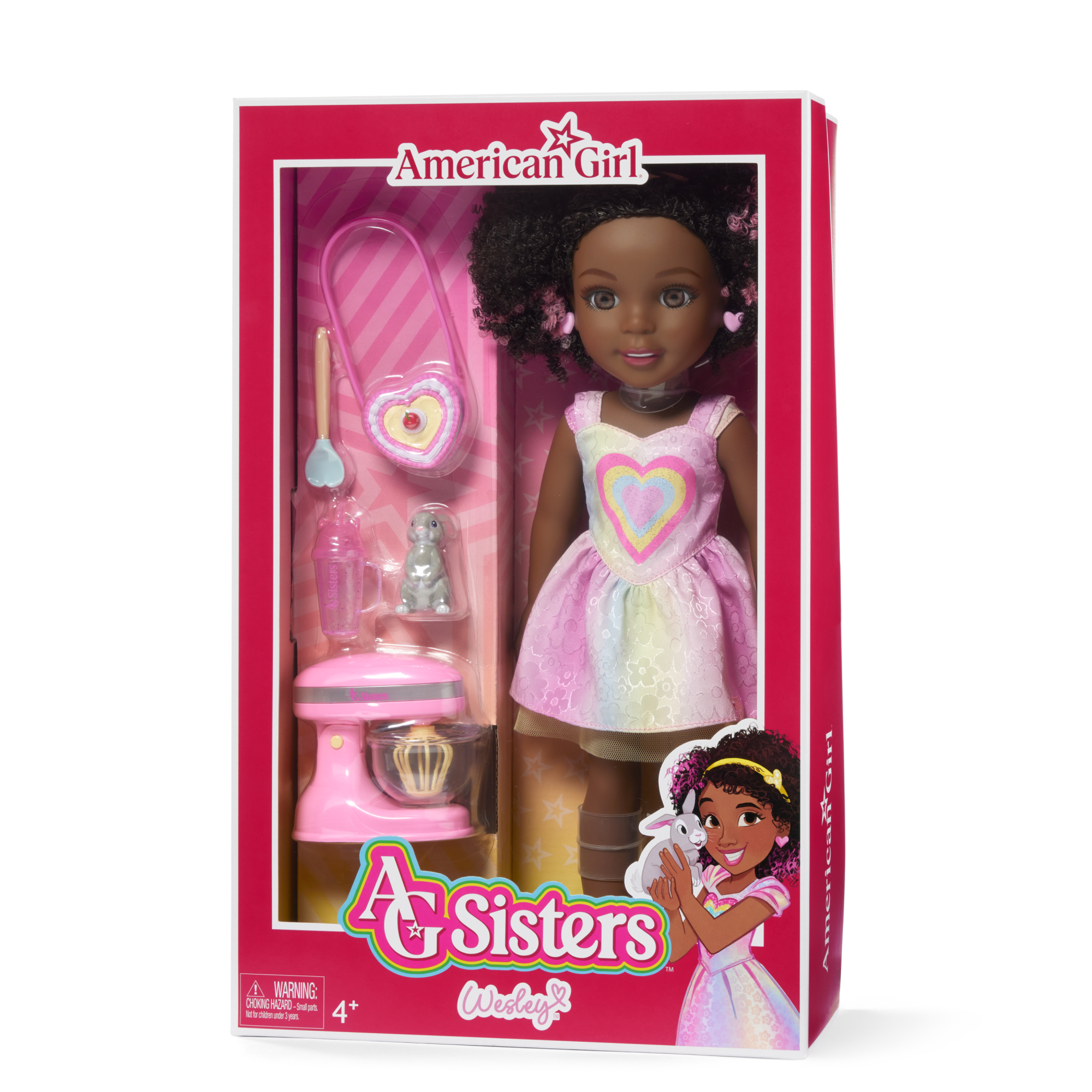 The Wesley 14.5″ doll features brown eyes and short curly dark-brown hair with light-pink highlights. Pair this 11-piece set with the other AG Sisters dolls and their collection for playtime fun (each sold separately).