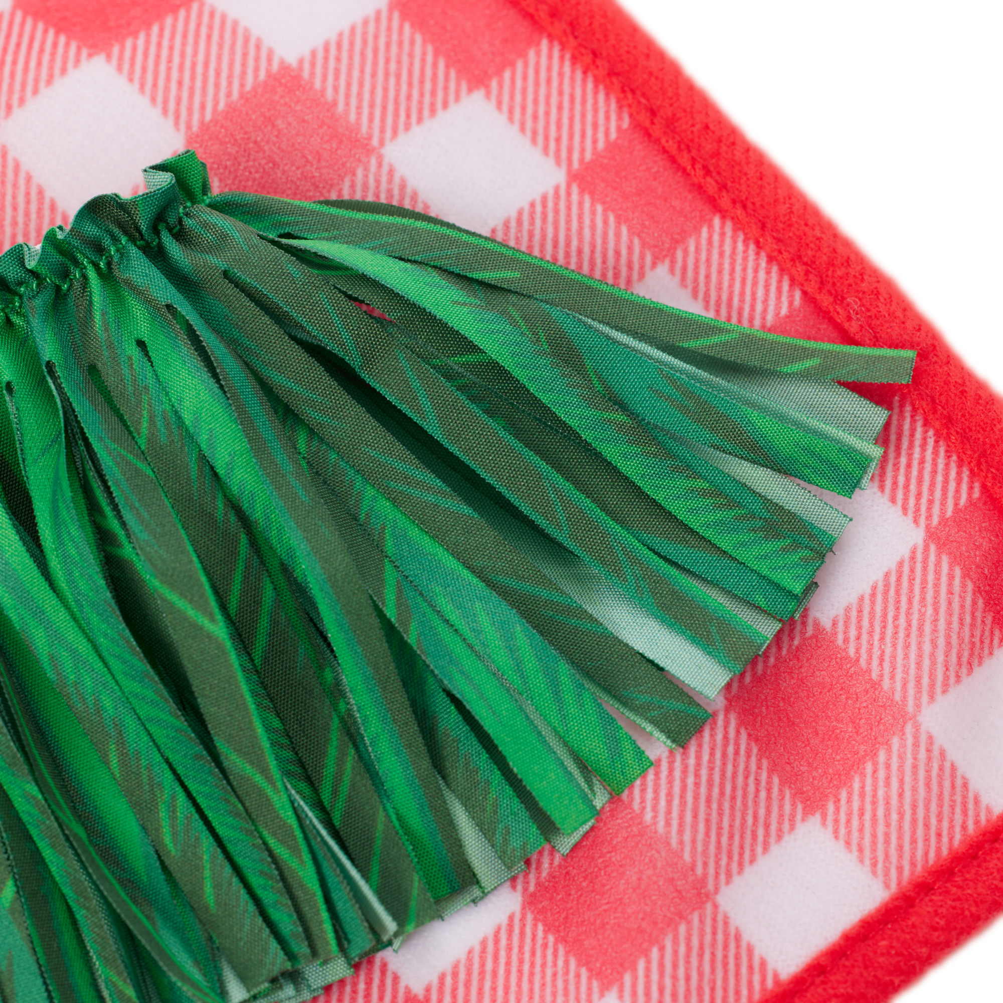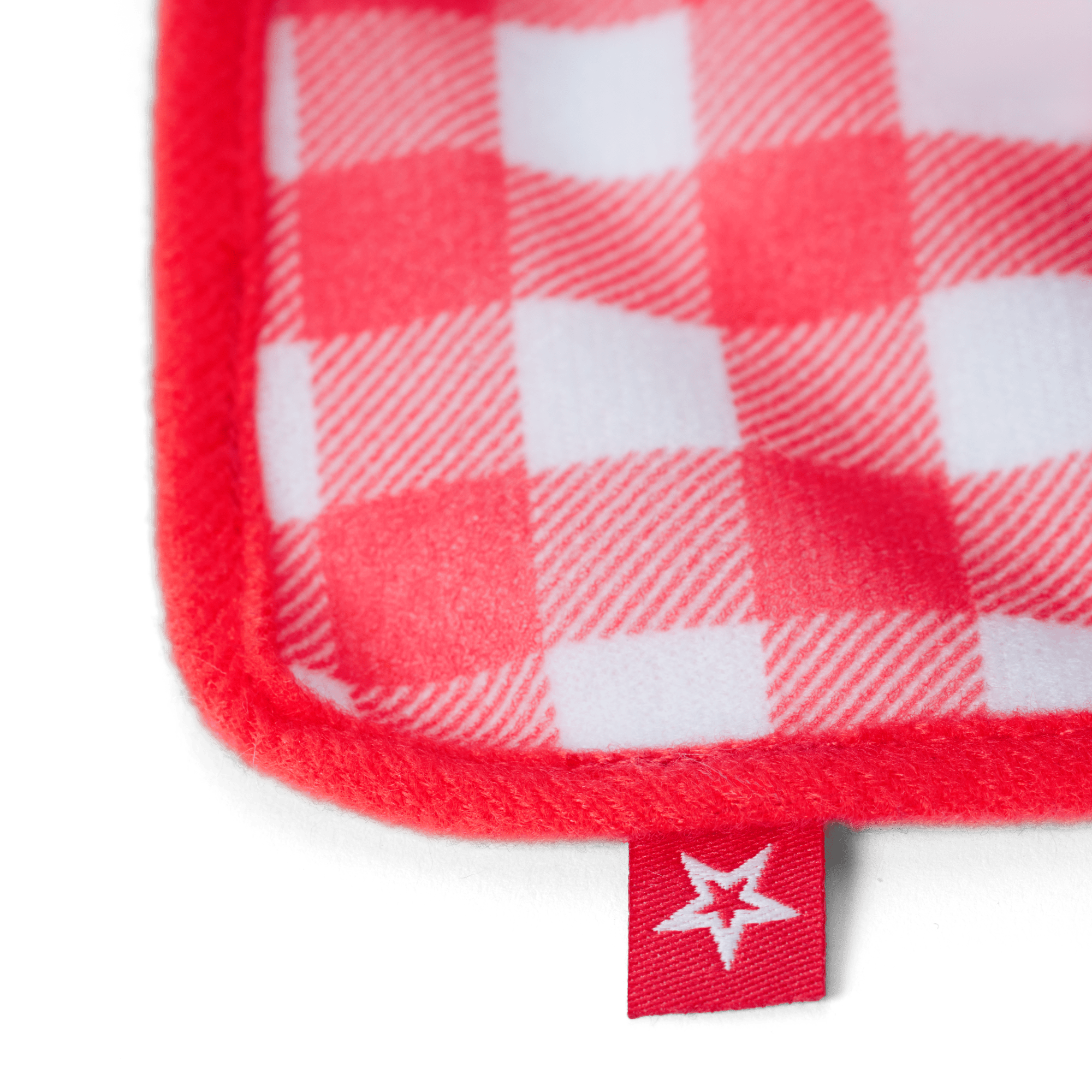 A red-and-white checkered picnic blanket
