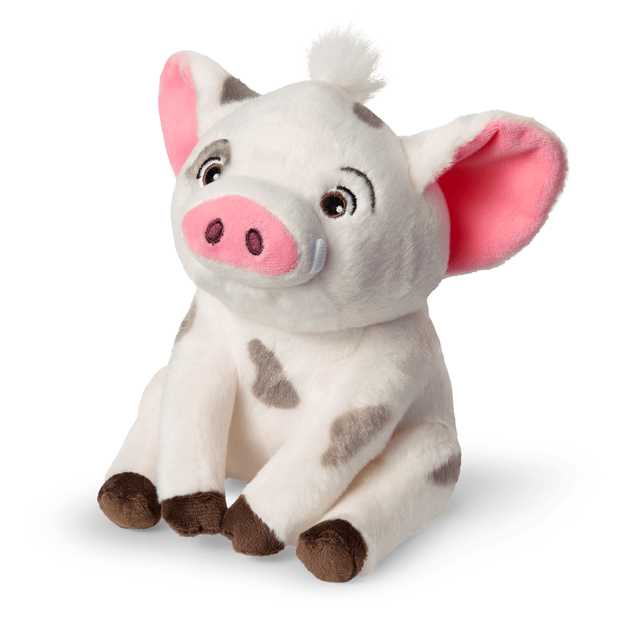 Disney Moana Accessories, Pua & Heihei by American Girl: An oar featuring Maui’s signature on one side and a clear plastic handle that Moana can hold; a plush Pua pig featuring embroidered eyes and a single fabric tusk; a Heihei rooster toy with eyes that inflate when squeezed; and a floral lei that fits around Moana’s head