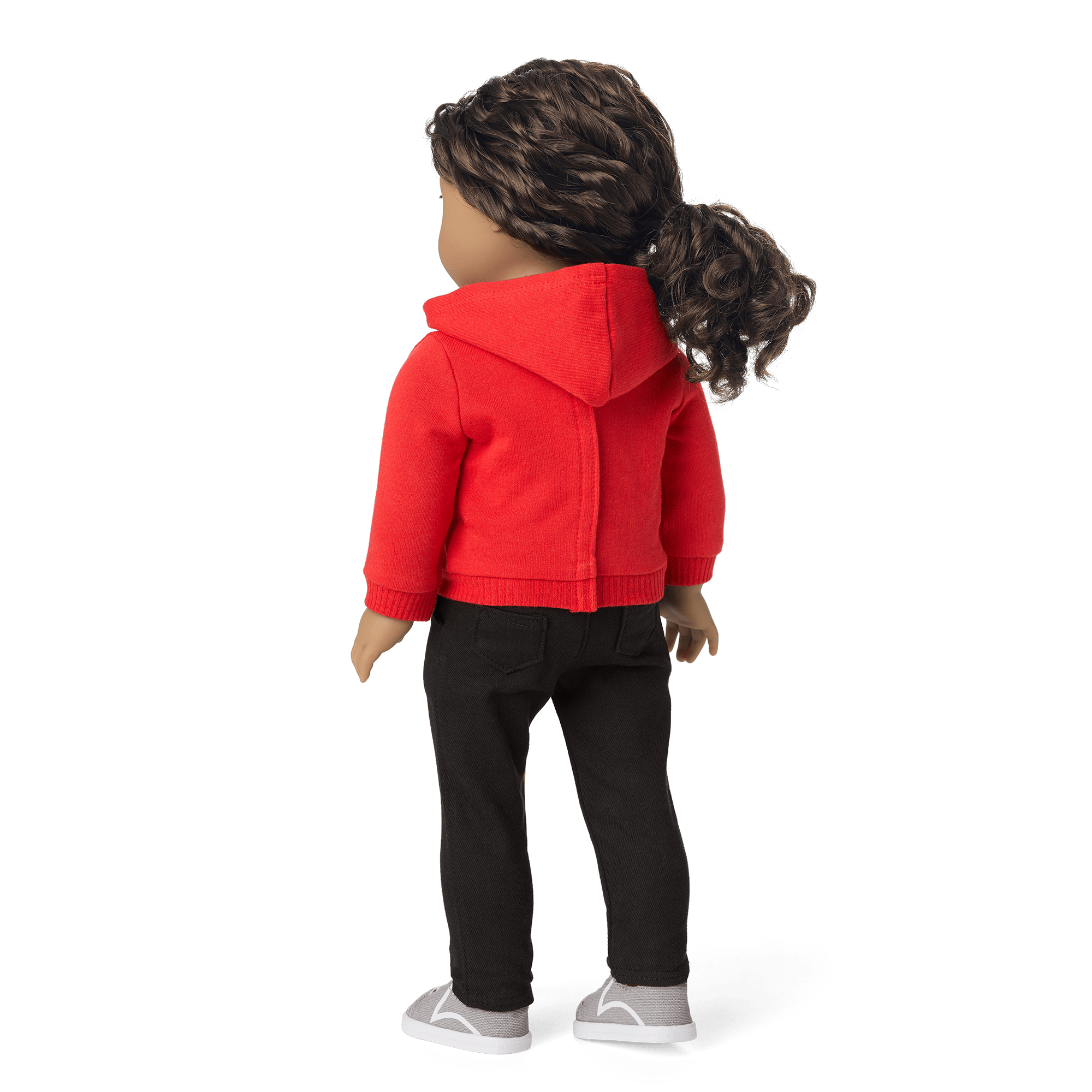 A red French terry hooded sweatshirt with an Xbox game controller graphic on the front