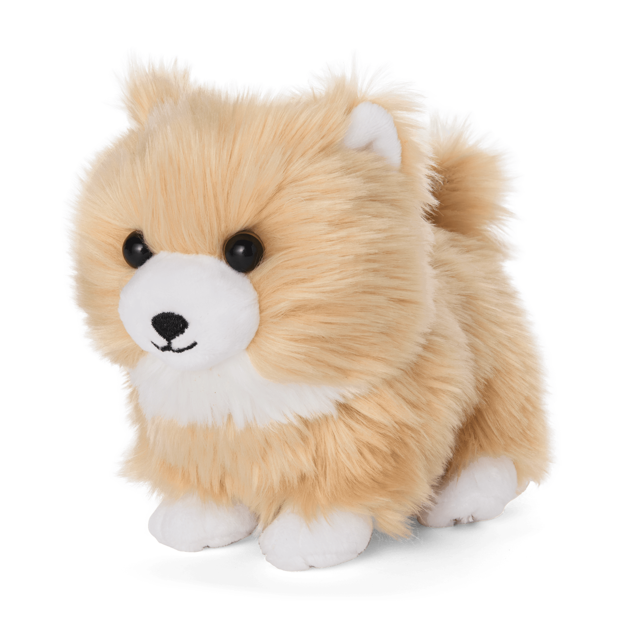 A plush Pomeranian dog with fluffy light-brown fur and a white chest