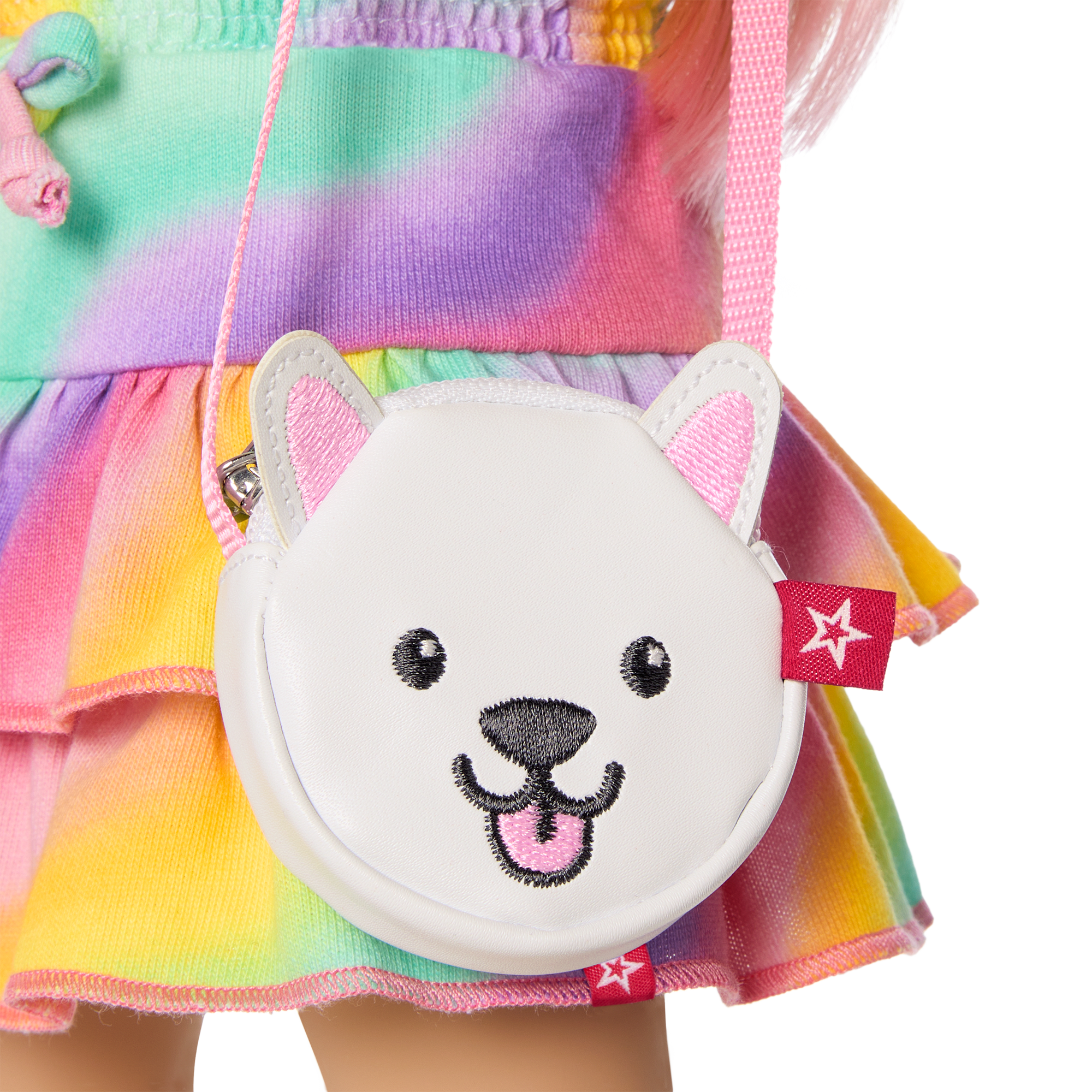 Whether Summer’s walking dogs or selling treats, she always has her favorite accessories. This seven-piece set of accessories for 18-inch dolls includes a headband, purse, and travel tumbler.
